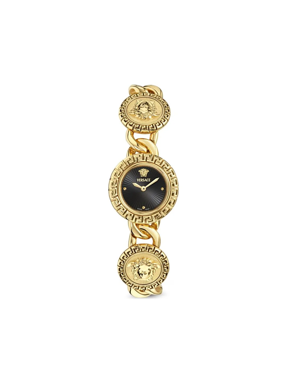 Medusa chain-link 28mm Highlights - Black dial - Round case shape - 28mm case size - Grecca dial features - Medusa head details - Quartz movement - Water resistance up to 30m/3 atm - This item comes with a standard one-year warranty from the boutique. Imported SIZE & FIT Measurement DIAMETER 1.1 in(2.8 cm)