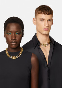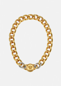 Quintessentially Versace, this chunky chain necklace is embellished with a bold Medusa medallion. All Versace Jewelry items are lead and nickel free. All materials are hypoallergenic. DETAILS & CARE - Medusa - Chain necklace - Metal: Brass - Finish: Tribute Gold and palladium - Please note water and perfume may damage the item - Made in Italy SIZE & FIT - Length: 45 cm