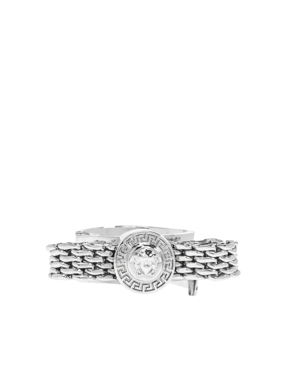 Medusa chain ring Highlights - Silver-tone - Medusa head - Chain embellishment - Bow motif - Textured band - Three-line band detail Made in Italy