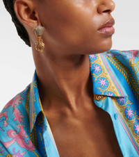 Inspired by Greek mythology, the Medusa head has become the ultimate signifier of the house of Versace. These drop earrings showcase the iconic symbol along with sea-inspired charms encrusted with crystals. Product Details - Material: brass, crystals - Made in Italy - Item color: gold - Closure: butterfly-back fastening - Item number: P01043435 Size & Fit - Length 4,7cm-2" - Max. width 2cm-1"