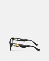 DETAILS Cat-eye optical glasses with clean geometric lines and Medusa emblem at the temples. - Medusa hardware - Frame color: Black - Temple color: Black - Lens color: Transparent - Frame: Acetate - Temple: Injected Item: O3347-OGB154_RTU_TU_ONUL__ SIZE & FIT - Eye size: 2.1"