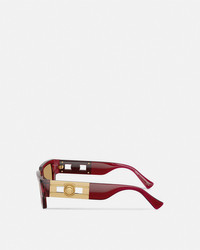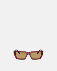 DETAILS Item: - Medusa hardware - Frame color: Transparent Red - Temple color: Transparent Red - Lens color: Brown - Frame: Acetate - Temple: Injected Item: O4459-O3887354_RTU_TU_ONUL__ SIZE & FIT - Eye size: 2.1"