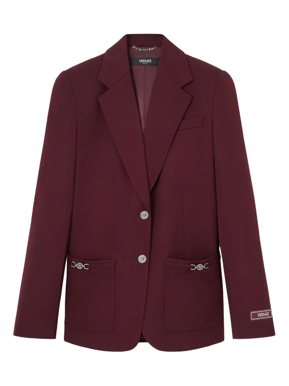 Medusa-detail pocket blazer Highlights - Dark red - Front button fastening - Notched lapels - Flap pockets - Buttoned cuffs Made in Italy Composition Fabric 100% Washing instructions Read Manufacturer Guidelines