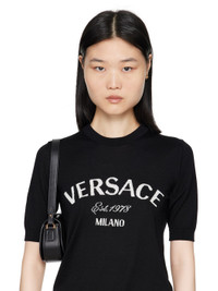 Pair of stud earrings in gold tone. · Textured detailing and Medusa graphic at face · Post-stud fastening · D0.5" Supplier color: Versace gold