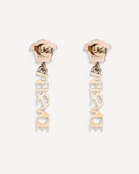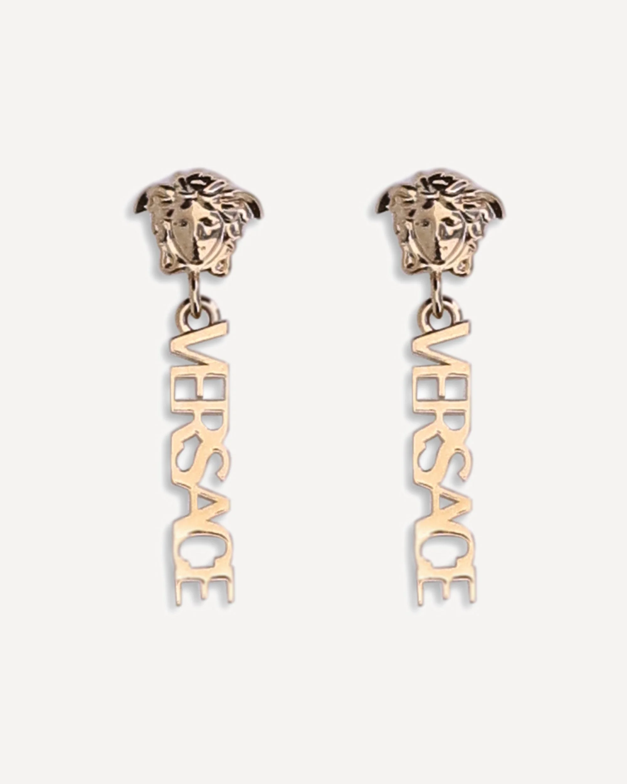 Versace Medusa Earrings are an elegant and visually striking accessory, embellished with small Medusa studs and long pendants with the Versace logo writing. Featuring a pin and butterfly closure, they combine refinement and boldness, perfect for completing the look with an iconic and distinctive touch. DETAILS - Sku: 10202501A00620_3J000 - Season: AW25 - Composition: GENERAL 100% Metal Metallic Metallised - MADE IN ITALY