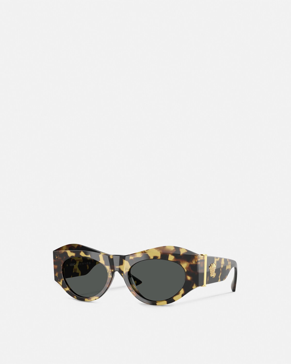 DETAILS Item: - Medusa hardware - Accent hinge - Frame color: Havana - Temple color: Havana - Lens color: Dark gray - Frame: Acetate - Temple: Acetate Item: O4477U-O7778752_RTU_TU_ONUL__ SIZE & FIT - Lens: W2 x H1.5" / W52 x H37.7 mm - Bridge: 0.7" / 19 mm - Temple: 5.3" / 135 mm