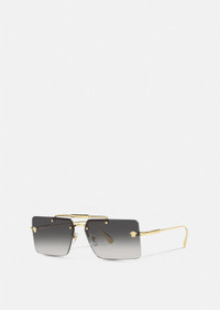These rectangular Medusa Glam sunglasses have thin metal frames, detailed with a double nose bridge and Medusa hardware on gradient lenses. DETAILS & CARE - Rectangular lens - Frame colour: Gold - Temple colour: Gold - Details: Exquisitely crafted Medusa on temple tip and lenses - Lens colour: Grey Gradient - Frame: Metal - Temple: Metal - Made in Italy SIZE & FIT - Eye size: 60 - Bridge: 13 - Temple: 145