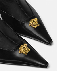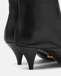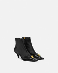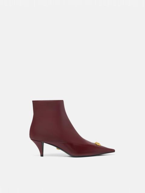 Ankle boots crafted in grained and polished calf leather, set on a low kitten heel, and featuring the signature three-dimensional La Medusa hardware on the pointed toe. - La Medusa hardware - Side zip closure - Pointed toe - Kitten heel - Outer Composition: 100% Calf Leather - Lining 1: 100% Lambskin - Lining 2: 100% Goat Leather - Sole: 100% Calf Leather Size & Fit - The shoe weighs approximately 7 oz / 0.2 kg for the model size 39 IT - Footbed: regular - Fits true to size, take your normal size Item: 1021709-1A01525_1B00V