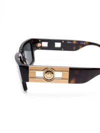 Medusa Head sunglasses Echoing a distinct ‘80s inclination that harks to the label’s founding era, these Versace Eyewear sunglasses are crafted in tortoise-effect acetate to a sharp rectangular shape and spliced with gold-tone Medusa head hardware at the chunky arms. Highlights - Brown - Acetate - Gold-tone - Rectangle frame - Tortoiseshell effect - Medusa head motif - Grey tinted lenses - Oversize arms - Curved tips - These glasses come with a protective case. Made in Italy Composition Acetate 100% SIZE & FIT Measurement Arm Length 5.51 in(14 cm) Bridge Width 0.7 in(1.8 cm) Lens Diameter 2.12 in(5.4 cm) Total Width 5.62 in(14.3 cm)