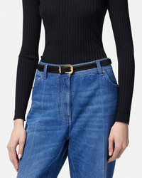 DETAILS This thin leather waist belt features the Medusa Heritage buckle with an accent belt loop - Buckle closure - Outer composition: 100% Calf leather Item: 1012166-DV3T_1B00V SIZE & FIT - Height: 0.8"
