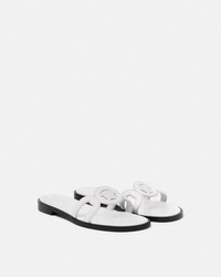 DETAILS These flat sandals are crafted from highfrequency leather in a smooth finish and feature the Medusa 95 on the uppers - Medusa '95 motif - Round toe - Outer composition: 100% Calf leather - Lining 1: 100% Lambskin - Lining 2: 100% Goat leather - Sole: 100% Calf leather Item: 1018364-DVT2P_1W560 SIZE & FIT - The shoe weighs approximately 10.6 oz / 0.3 kg for the model size 39 IT - Footbed: regular - Fits true to size, take your normal size