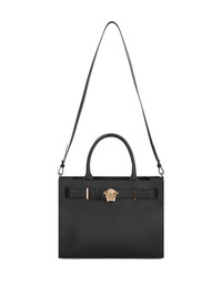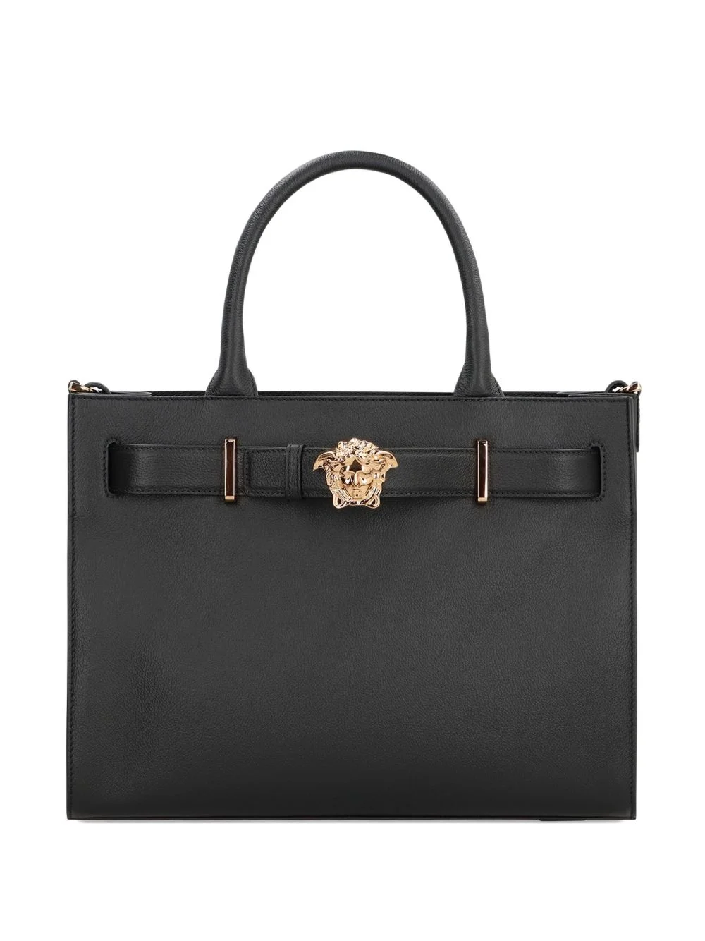 Medusa leather tote bag Highlights - Black - Medusa plaque - Top zip closure - Removable shoulder strap - Gold-tone hardware - Back pocket Imported Composition Outer: Leather 100% SIZE & FIT Measurement DEPTH 5.9 in(15 cm) HEIGHT 10.23 in(26 cm) WIDTH 13.38 in(34 cm)