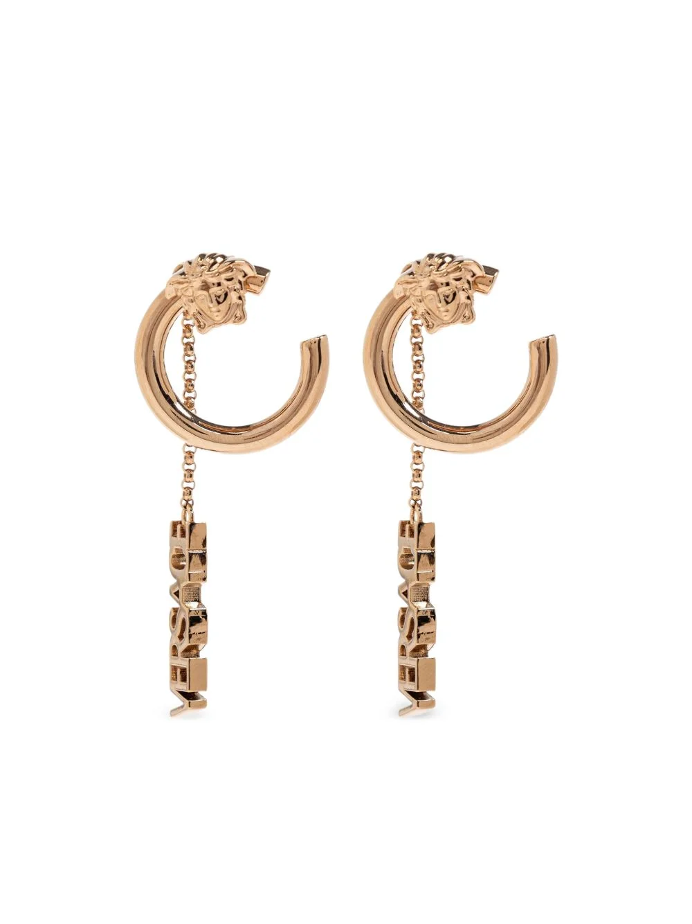 Medusa-logo earrings Highlights - Gold-tone - Medusa logo - Chain embellishment - Logo lettering - Hoop design - These earrings come as a pair. Made in Italy