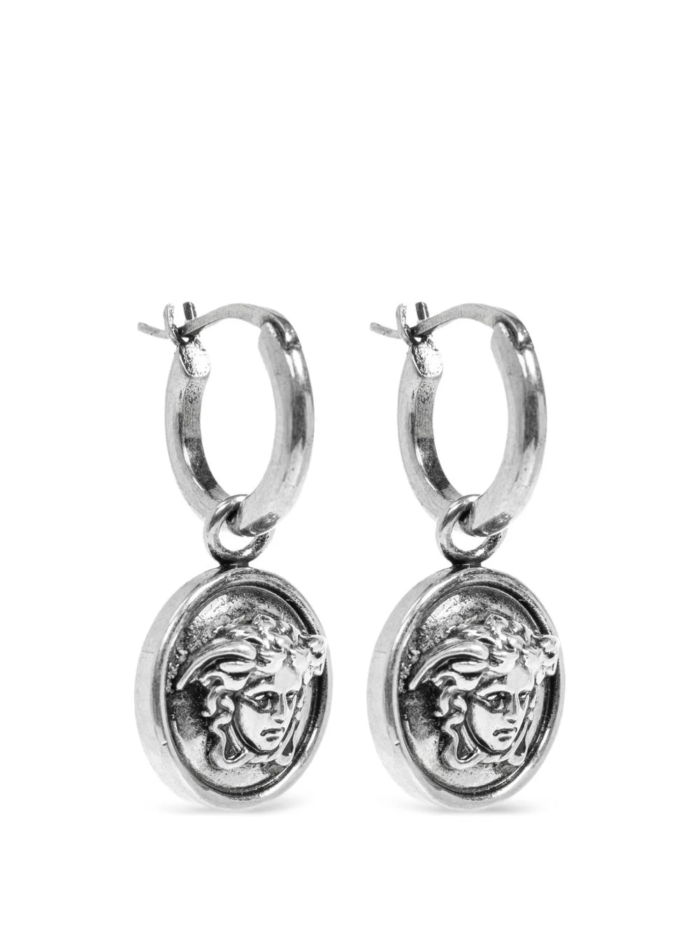 Medusa medallion drop earrings Highlights - Silver-tone - Hoop design - Medallion detail - Engraved logo - For pierced ears - These earrings come as a pair. Made in Italy