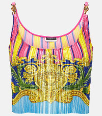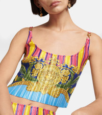 Versace's Baroque-inspired prints recall the intricate ornamentation of the 17th century. Made from plissé, this crop top showcases the label's commitment to maximalism with a colorful printed design and Medusa 95' hardware embellishments at the straps . Product Details - Made in Italy - Care instructions: dry clean - Trim: 100% polyester - Designer color name: Multicolor - Material: 100% polyester - Item number: P00818407 Size & Fit - True to size - Fitted - Lightweight material - Cropped - The model seen in the picture is 178cm-5'10" and wearing a size IT 40