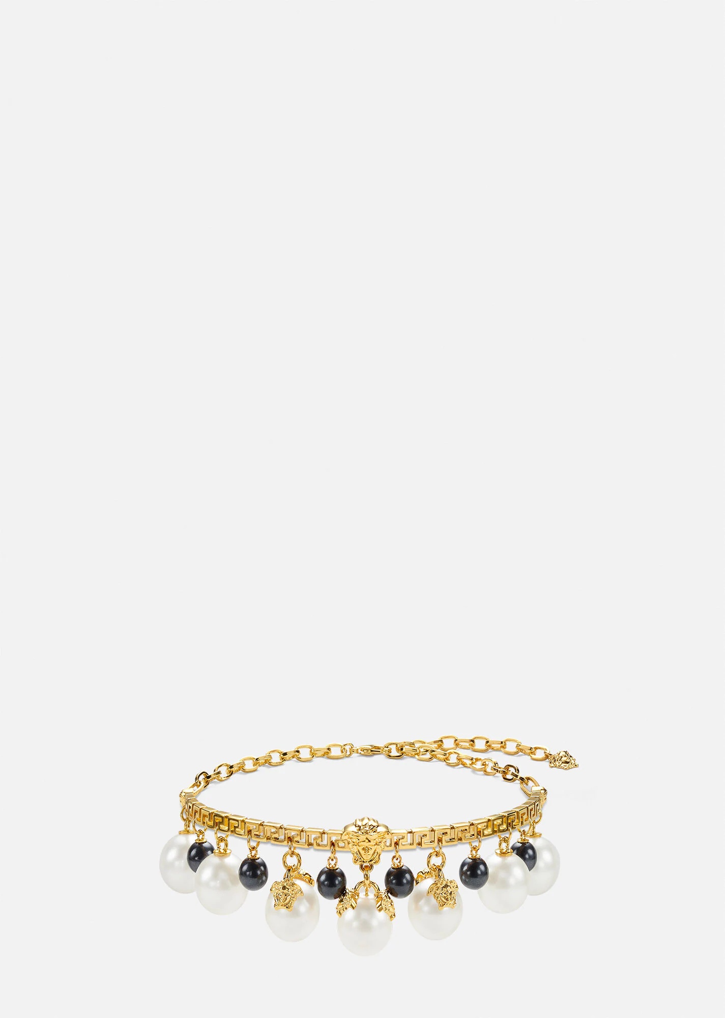 With a rigid Greca chocker and chain detail at the back, this necklace features alternating faux pearls, accented by the signature Medusa setting. All Versace jewellery products are lead and nickel free. All materials are hypoallergenic. DETAILS & CARE - La Medusa setting - Greca engraving - Faux pearl pendants - Lobster clasp closure - Material: 100% Metal