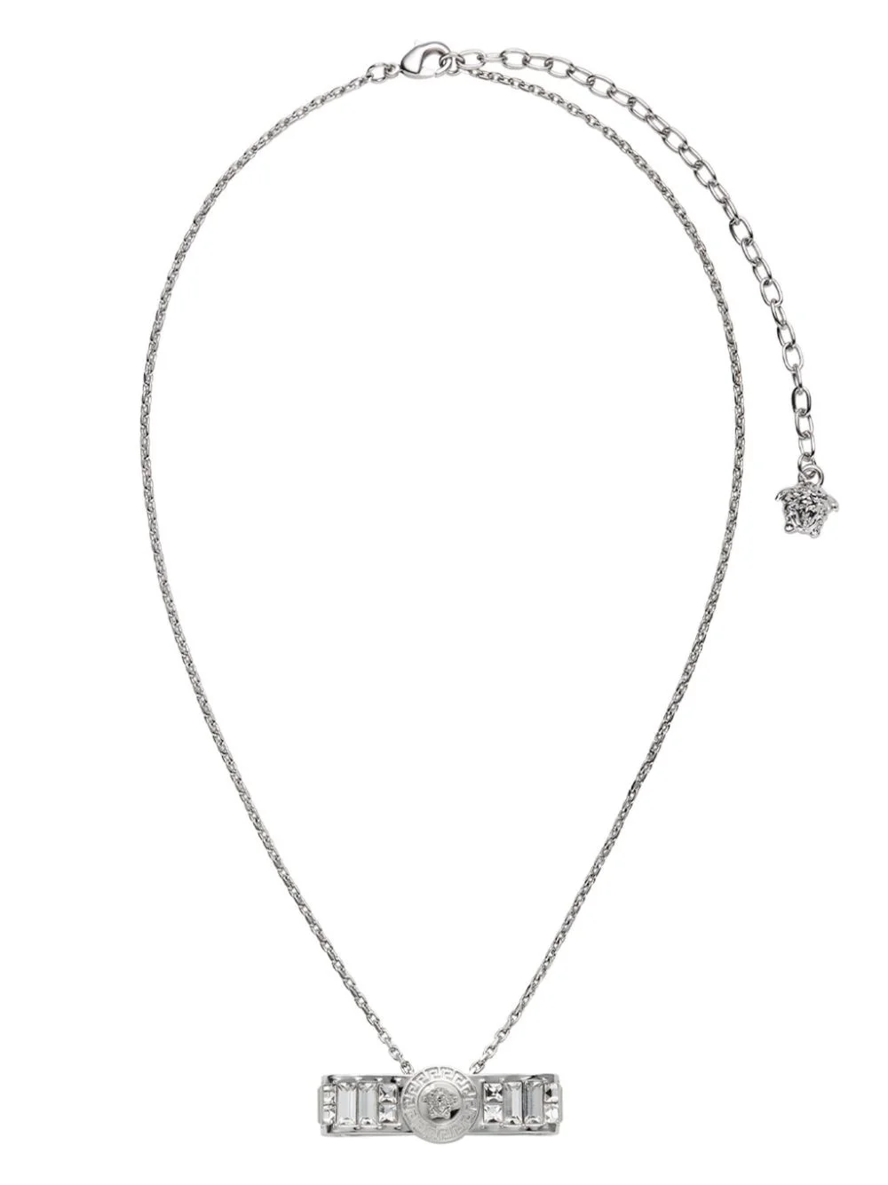 Gianni Ribbon crystal pendant necklace Highlights - Silver-tone - Metal - Polished finish - Lobster claw fastening - Delicate chain - Medusa head motif - Crystal embellishment - Signature greca detailing Made in Italy