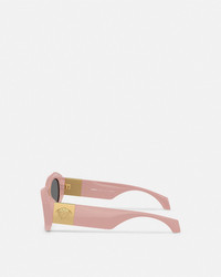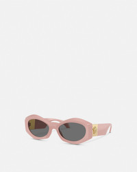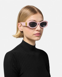 DETAILS Featuring an oval shape with structured, irregular lines, these sunglasses with injected frames are accented by a Medusa hardware at the sides. - Medusa hardware - Frame color: Pink - Temple color: Pink - Lens color: Gray - Frame: Injected - Temple: Injected Item: O4466U-O54638754_RTU_TU_ONUL__ SIZE & FIT - Eye size: 2.1" - Bridge: 0.7" - Temple: 5.5"