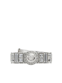 Gianni Ribbon crystal ring Highlights - Silver-tone - Metal - Polished finish - Medusa head motif - Crystal embellishment - Signature greca detailing - Engraved logo Made in Italy