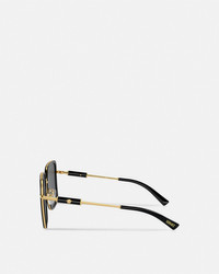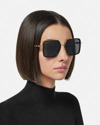 DETAILS These square-shaped sunglasses have thin metal frames, detailed with a double nose bridge, and are accented with Medusa hardware at the side. - Medusa hardware - Frame color: Black - Temple color: Black - Lens color: Dark Gray - Frame: Metal - Temple: Metal Item: O2261-O10028756_RTU_TU_ONUL__ SIZE & FIT - Eye size: 2.2"