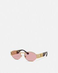 DETAILS Oval frame sunglasses defined by geometric lines at the nose bridge and temples, accented by a Medusa hardware at the side. - Medusa hardware - Frame color: Gold-tone - Temple color: Gold-tone - Lens color: Light Violet - Frame: Metal - Temple: Metal Item: O2264-O10028456_RTU_TU_ONUL__ SIZE & FIT - Eye size: 2.2"