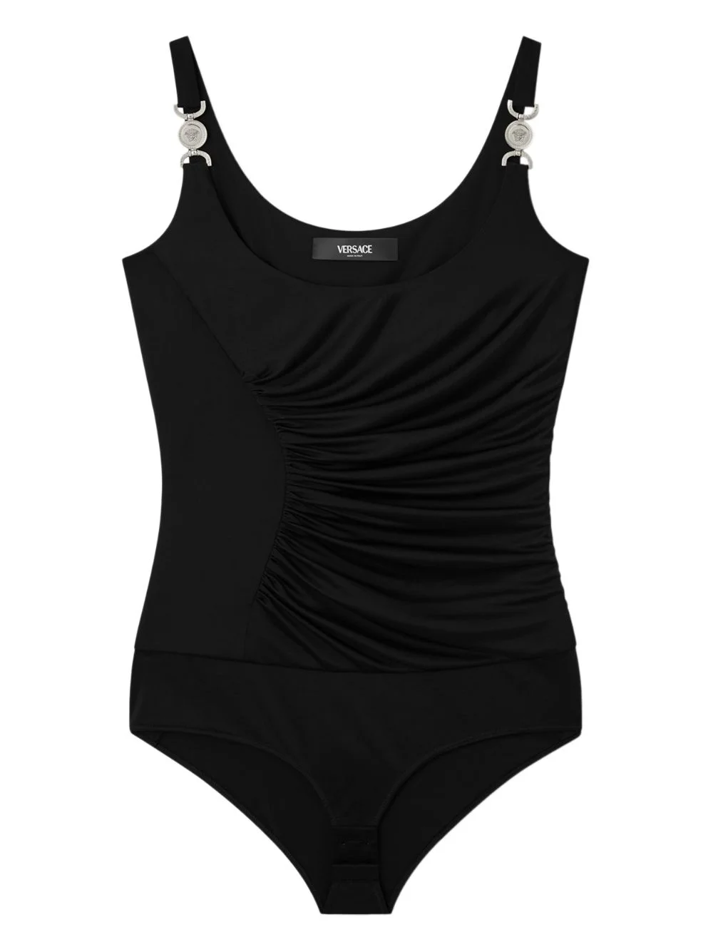 Medusa ruched body Highlights - Black - Medusa detail - Ruched design - Sleeveless - Scoop neck Made in Italy Composition Outer: Viscose 95%, Spandex/Elastane 5% Lining: Viscose 95%, Spandex/Elastane 5% Washing instructions Read Manufacturer Guidelines