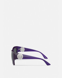 DETAILS Square-frame sunglasses featuring a Medusa emblem at the side. - Medusa hardware - Frame color: Transparent purple - Temple color: Transparent purple - Lens color: Dark grey - Frame: Injected Item: O4452-O54198755_RTU_TU_ONUL__ SIZE & FIT - Lens width: 54 mm - Bridge: 19 mm - Temple: 135 mm