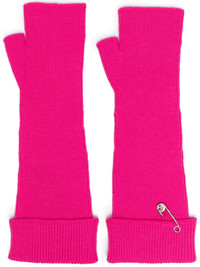Safety-Pin knitted fingerless gloves Woven in Italy from a sumptuous wool blend, these hot-pink elbow-length Versace gloves are imbued with punk influences thanks to their fingerless design and signature Medusa Safety Pin detail. Highlights - Hot pink - Wool blend - Knitted construction - Signature medusa safety pin detail - Fingerless design - Folded edge - Elbow length Made in Italy Composition Wool 99%, Other fibres 1%