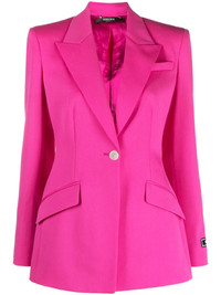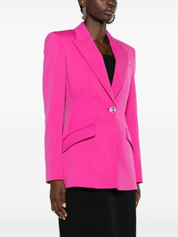 Medusa single-breasted virgin-wool blazer Sharp suiting in a solid wash of pink, this blazer spotlights Versace’s tailoring mastery. It's cut to a slim silhouette with pearlescent Medusa buttons that nod to the brand’s mythological inspirations. Highlights - Pink - Virgin wool - Medusa head motif - Peak lapels - Front button fastening - Long sleeves - Two front flap pockets - Central rear vent - Satin lining Made in Italy Composition Lining: Cupro 58%, Viscose 42% Outer: Virgin Wool 100% SIZE & FIT Model measurements Height 5 ft 10 in(1.77 m) Bust/Chest 32.28 in(82 cm) Hips 35.03 in(89 cm) Waist 25.19 in(64 cm) FittingInformation Designed for a slim fit that sits just away from the body offering a close yet comfortable fit The internal shoulder pads offer a structured shape Made from a midweight non-stretch fabric Measurement SLEEVE LENGTH 24.4 in(62 cm) LENGTH 28.74 in(73 cm) WAIST 32.28 in(82 cm) Washing instructions Dry Clean Only