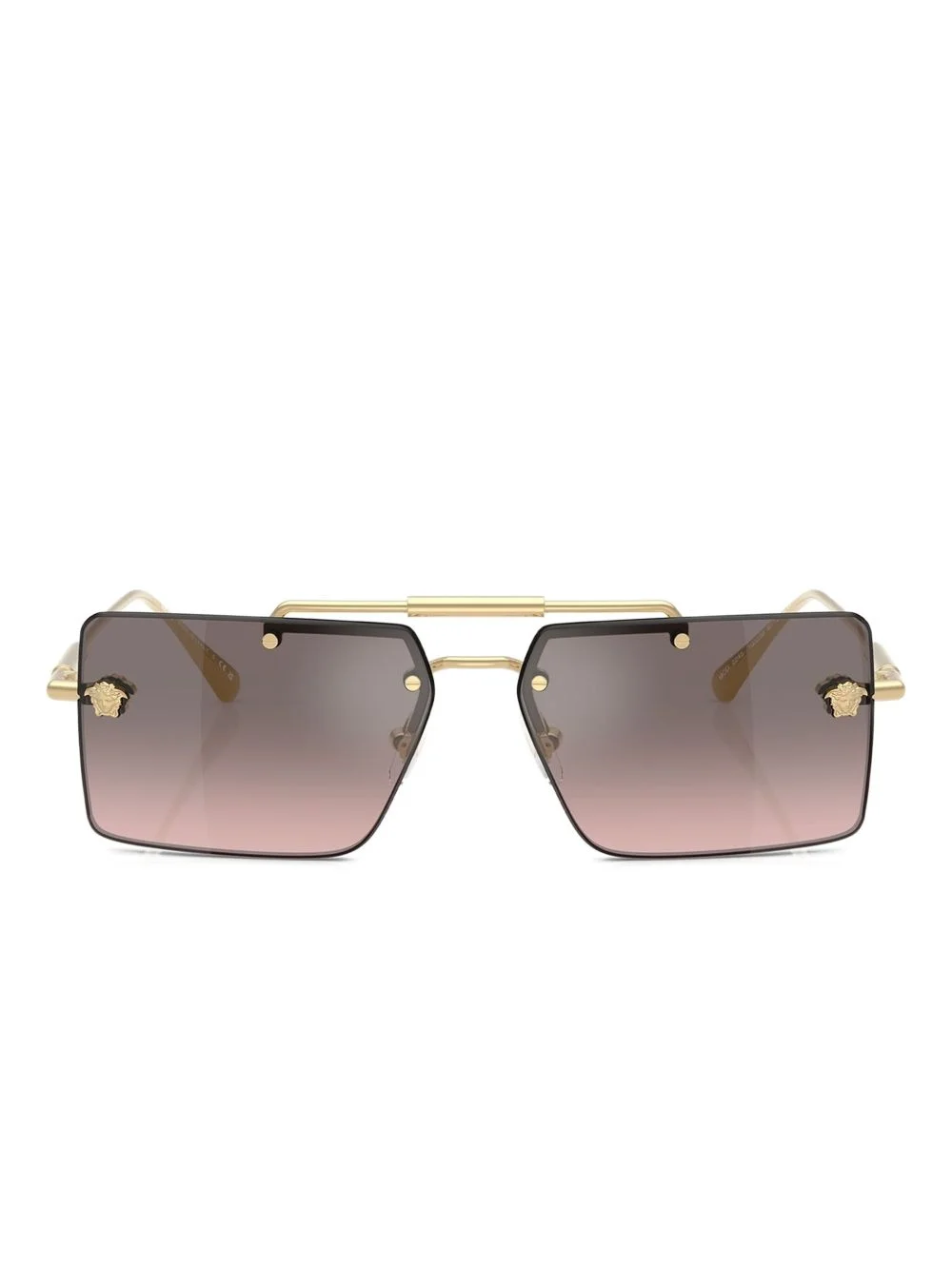 Medusa square-frame sunglasses Highlights - Gold - Square frame - Medusa head embellishments - Gradient lenses - Rimless design Made In Italy Composition Metal 100% SIZE & FIT Measurement Arm Length 5.7 in(14.5 cm) Bridge Width 0.51 in(1.3 cm) Lens Diameter 2.36 in(6 cm)