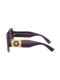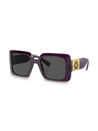 Medusa Stud square-frame sunglasses Versace Eyewear spotlights one of its emblematic house codes with these square-frame sunglasses. They’re crafted from dark purple acetate and tipped with gold-tone Medusa hardware at each arm. Highlights - Dark purple - Acetate - Square frame - Medusa plaque detail - Grey tinted lenses - Logo plaque at the arm - Curved arms - Curved tips - These glasses come with a protective case. Made in Italy Composition Plastic 100% SIZE & FIT Measurement WIDTH 5.78 in(14.7 cm) Lens Diameter 2.12 in(5.4 cm) Bridge Width 0.86 in(2.2 cm) Arm Length 5.51 in(14 cm)