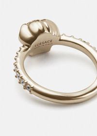 Gold tone ring with Medusa head centrepiece and black Swarovski crystal band. DETAILS & CARE - Medusa Swarovski band ring - Gold tone - Medusa head centrepiece - Swarovski crystal band detail - Hypoallergenic, lead and nickel free - 100% Metal - Made in Italy SIZE & FIT - Width 1,5 cm