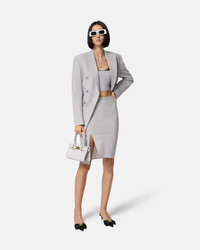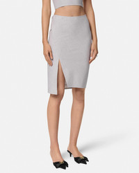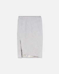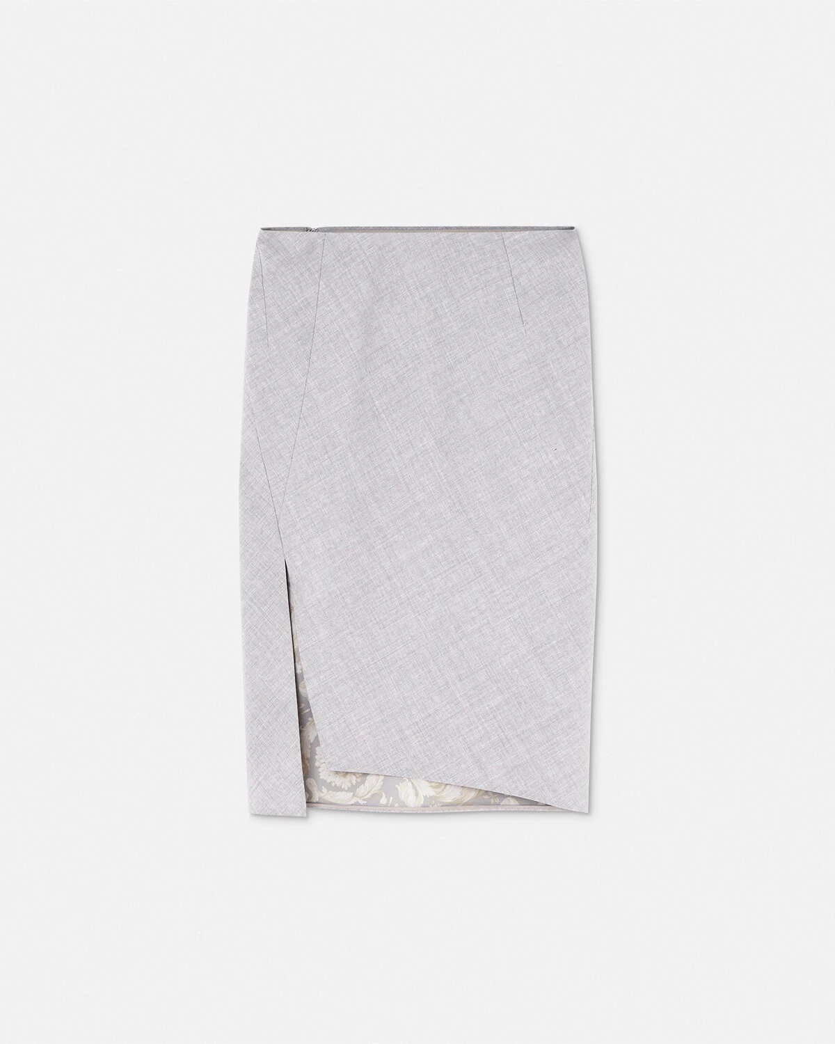 DETAILS A stretch and lightweight mélange wool-blend midi skirt with an asymmetric hem and a technical, adhesive bonded Barocco print lining. - Barocco print lining - Concealed side zip closure - Outer composition: 70% Wool, 27% Polyester, 3% Elastane Item: 1015704-1A12005_1EB60 SIZE & FIT - The model is 5'10" tall and wears size 38 IT