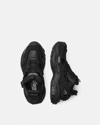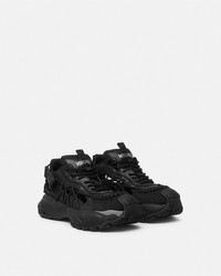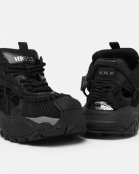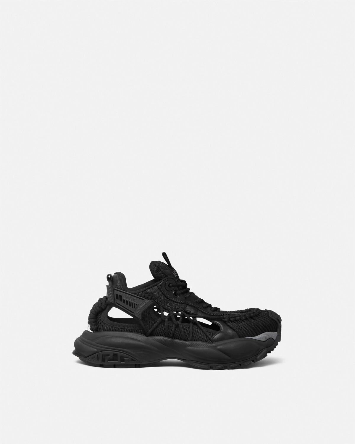 DETAILS A futuristic design fusing the codes of the House with intricate craftsmanship. Versace Mercury M_VS_01 is set on lightweight, shock-absorber Greca rubber and EVA soles. Cutout mesh uppers are distinguished by a hand-knotted rope construction. The footbed features dynamic, screen-printed Mercury lettering, and the tongue is detailed by a foil Versace logo and a jacquard Greca ribbon pull tab. - Versace logo on tongue - M_VS_01 style code on heel counter - Versace logo engraved rubber loop - Greca pull tab - Low top - Lace-up - Cutout - High rebound performance - Outer composition:100% Calf leather - Lining 1: 100% Nylon - Lining 2: 100% Calf leather - Trim 1: 100% Calf leather - Trim 2: 100% Polyester - Sole: 100% Rubber - Outsole made with 20% pre-consumer recycled rubber Item: 1016874-1A11861_1B000 SIZE & FIT - The shoe weighs approximately 17.6 oz / 0.5 kg for the model size 37 IT - Footbed: comfortable - Fits true to size, take your normal size