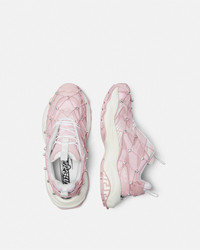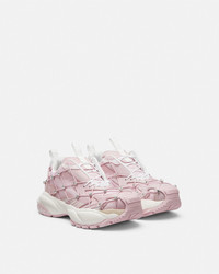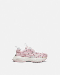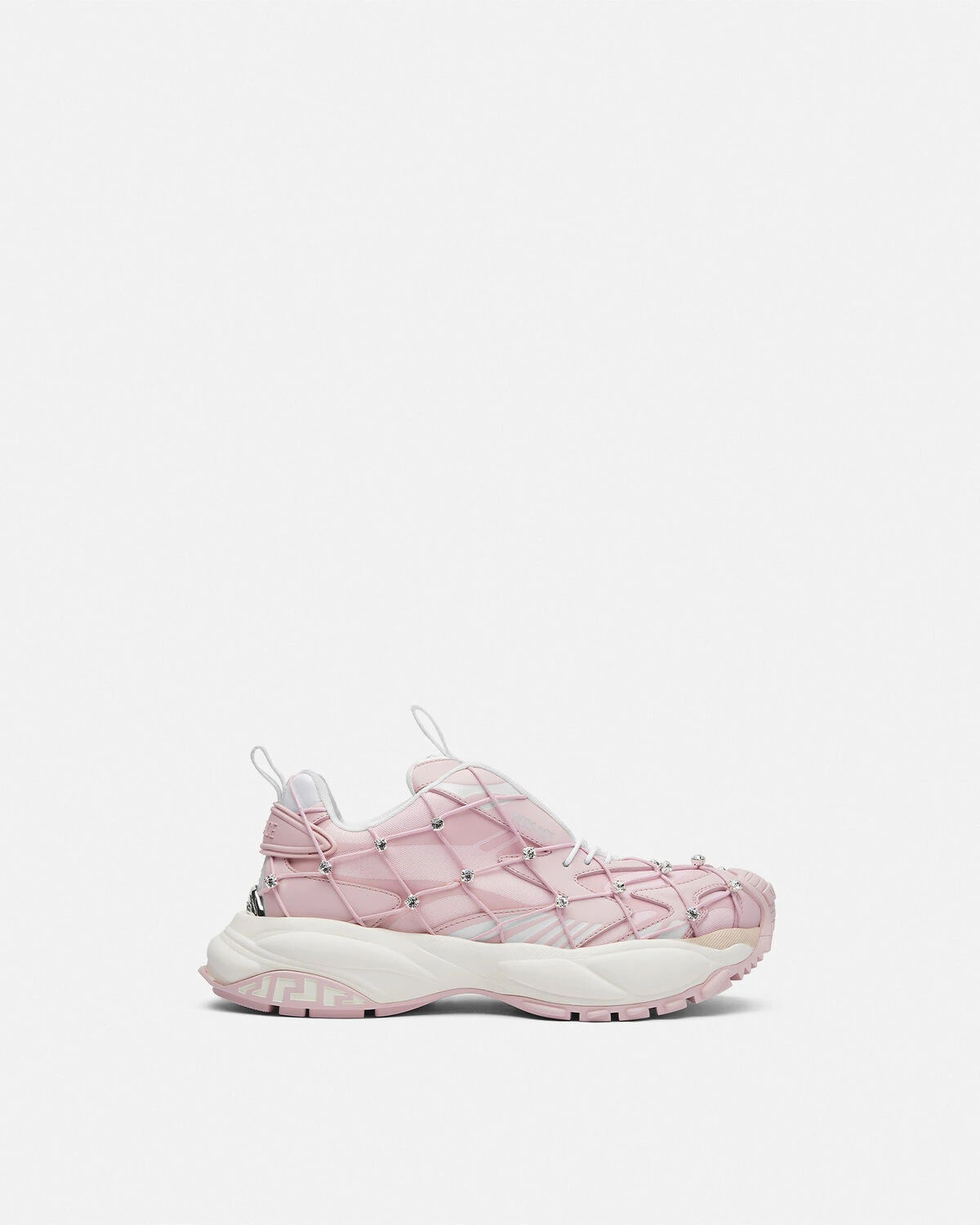 DETAILS A futuristic design fusing the codes of the House with intricate craftsmanship. Versace Mercury M_VS_02 is set on lightweight, shock-absorber Greca rubber and EVA soles. Breathable mesh uppers are distinguished by a superimposed hand-knotted rope net construction with hand-sewn crystal appliqués. The footbed features dynamic, screen-printed Mercury lettering, and the tongue is detailed by a foil Versace logo and a jacquard Greca ribbon pull tab. - Versace logo on tongue - M_VS_02 style code on heel counter - Versace logo-engraved rubber loop - Crystal embellishments - Greca pull tab - Low top - Lace-up - High rebound performance - Outer composition: 68% Nylon, 32% Calf leather - Lining 1: 100% Polyester - Lining 2: 100% Calf leather - Sole: 100% Rubber Item: 1016380-1A11508_2PU10 SIZE & FIT - The shoe weighs approximately 17.6 oz / 0.5 kg for the model size 37 IT - Footbed: comfortable - Fits true to size, take your normal size