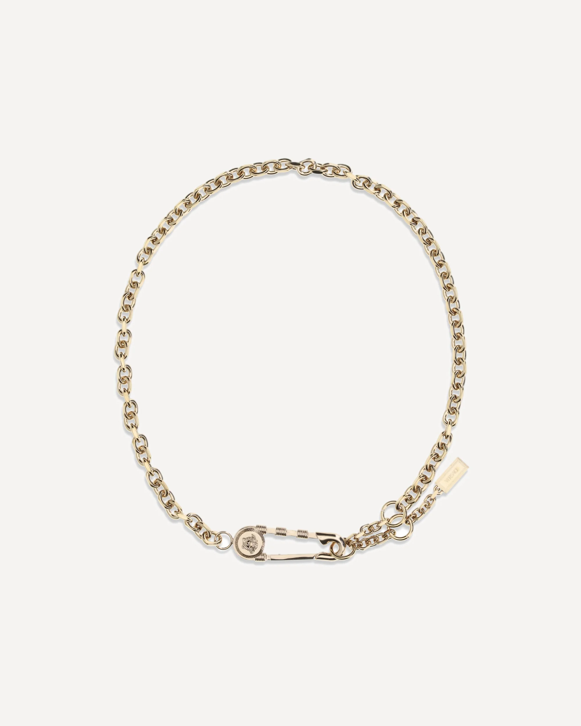 The chain Belt by Versace is an iconic and highly recognizable accessory, defined by bold elegance and the brand’s unmistakable identity. Crafted in polished metal, it features a practical and secure lobster-claw closure, while the decorative safety pin adds a signature Versace touch. The design is further elevated by the Medusa head motif, an emblematic symbol that brings sophistication and a strong, distinctive attitude. Perfect for enhancing both casual and more refined outfits, this belt delivers an instantly recognizable style accent. DETAILS - Sku: 10183661A00620_3P000 - Season: SS26 - Dimension: 3 - Composition: GENERAL 100% Metal Metallic Metallised - MADE IN ITALY