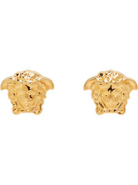 Pair of stud earrings in gold-tone brass. · Signature Medusa at face · Post-stud fastening · D0.25" Supplier color: Versace gold