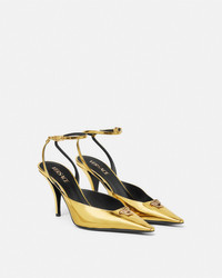 DETAILS These slingback pumps in metallic laminated calf leather are set on a stiletto heel featuring a pointed toe and the signature La Medusa hardware on the uppers - La Medusa hardware - Adjustable ankle strap - Stiletto heel - Outer composition: 100% Calf leather - Lining 1: 100% Goat leather - Lining 2: 100% Lambskin - Sole: 100% Calf leather Item: 1020479-1A08609_1X00V&sc_eh=9d61f9325a8fadba1&sc_lid=781196012&sc_llid=4511&sc_src=email_8466758&sc_uid=5Q6ec3rb1v&wt_mc=FRA.e-mail.newsletter.mail_20250712.20250712_1017_20250710_RTW_W_FR.IMAGE%20md_1235617.png SIZE & FIT - The shoe weighs approximately 7.1 oz / 0.2 kg for the model size 39 IT - Footbed: regular - Fits true to size, take your normal size - Heel: 3.3" / 8.5 cm