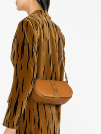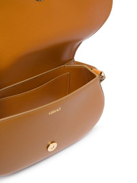 Greca Goddess shoulder bag Versace's Greca Goddess line is characterised by the label's Greca chain – a detail inspired by mythology. Part of the range, this shoulder bag is crafted from brown leather with a foldover top and a spacious interior with a slip pocket. The signature gold-tone hardware steals focus on the front flap and shoulder strap. Highlights - Caramel brown - Calf leather - Signature greca detailing - Gold-tone hardware - Foldover top with magnetic fastening - Adjustable detachable shoulder strap - Main compartment - Internal slip pocket Made in Italy Composition Outer: Calf Leather 100% Lining: Lambskin 100% SIZE & FIT Model measurements Height 5 ft 10 in(1.77 m) Bust/Chest 32.7 in(83 cm) Hips 35.4 in(90 cm) Waist 23.6 in(60 cm) Measurement DEPTH 2.4 in(6 cm) HEIGHT 5.1 in(13 cm) STRAP 19.7 in(50 cm) WIDTH 9.4 in(24 cm)