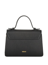 mini La Medusa tote bag Highlights - Black - Foldover top with magnetic fastening - Single flat top handle - Adjustable detachable shoulder strap - Internal slip pocket Made in Italy Composition Lining: Cotton 100% Outer: Calf Leather 100% SIZE & FIT Measurement DEPTH 2.16 in(5.5 cm) HEIGHT 5.31 in(13.5 cm) WIDTH 7.48 in(19 cm)