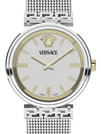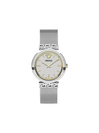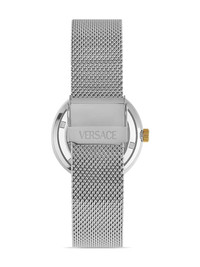 Mythos 36mm Highlights - 36mm - Stainless steel - Silver-tone - Quartz movement - Round face - Geometric dial - Baton hands - Screw-down crown - Signature greca detailing - Medusa head motif - Leather bracelet - Buckle fastening - This item comes with a standard one-year warranty from the boutique. Imported SIZE & FIT Measurement DIAMETER 1.41 in(3.6 cm)