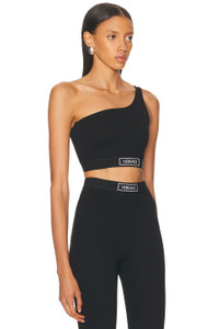 Details - Self: 70% viscose, 21% polyamide, 9% elastane - Lining: 82% polyamide, 18% elastane - Contrast Fabric: 82% polyester, 9% polyamide, 9% elastane - Machine wash - Unpadded cups - Pull-on styling - One shoulder styling - Front embroidered logo - Lightweight activewear fabric - Item not sold as a set - Made in Italy - Our Style No. VSAC-WI107 - Manufacturer Style No. 1021205_1A12037