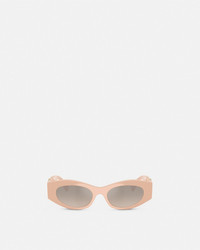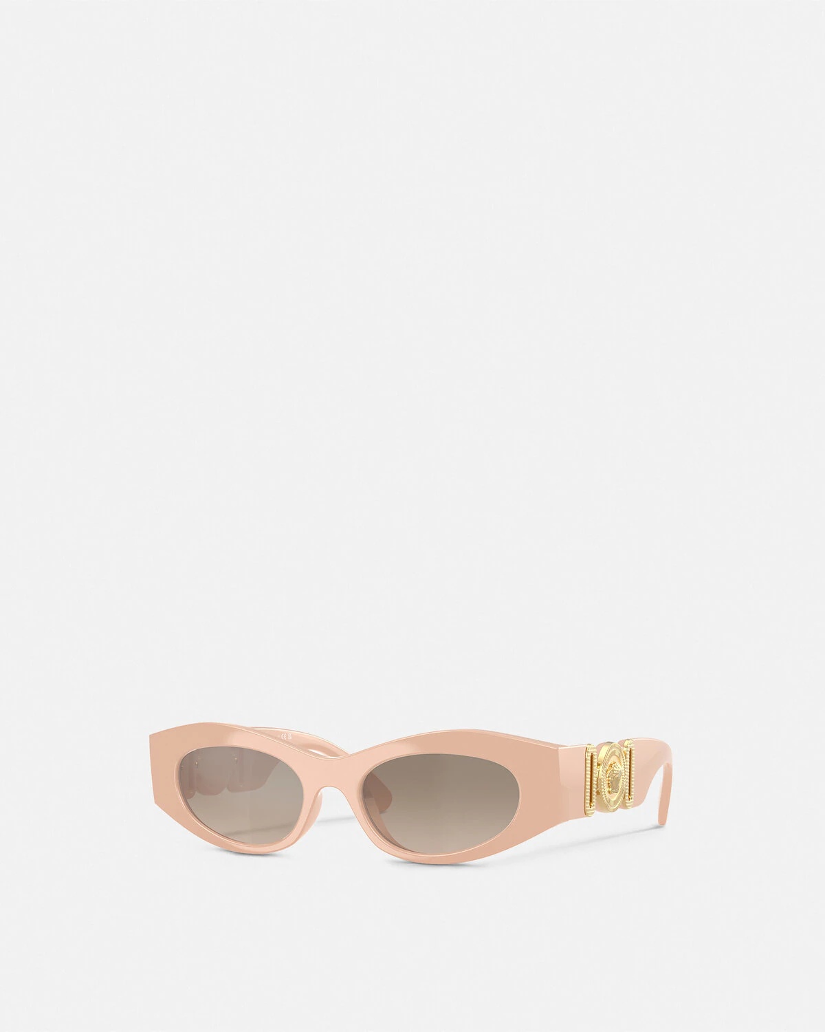 DETAILS An addition to the Medusa Biggie line, these cat-eye oval sunglasses with an injected construction feature the iconic gold-tone Medusa Biggie embellishment at the wide temples. - Medusa Biggie hardware - Frame color: Nude - Temple color: Nude - Lens color: Brown and gray gradient - Frame: Injected - Temple: Injected Item: O4480U-O54946I51_RTU_TU_ONUL__ SIZE & FIT - Lens: W2 x H1.3" / W51 x H32.9 mm - Bridge: 0.7" / 18 mm - Temple: 5.5" / 140 mm