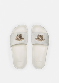 Rubber pool slides embellished with a three-dimensional Medusa plaque surrounded by a Greca accent. DETAILS & CARE - Three-dimensional Medusa - Greca - Outer fabric: 100% Polyurethane - Sole: 100% Polyurethane - Made in Italy SIZE & FIT - Height: 0,5 - All sizes fit Italian standards - Fits true to size, take your normal size