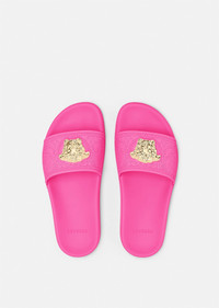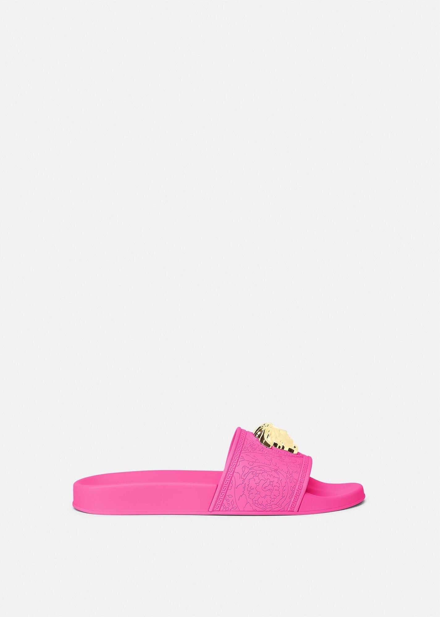 Rubber pool slides embellished with a three-dimensional Medusa plaque surrounded by a Greca accent. DETAILS & CARE - Three-dimensional Medusa - Greca - Outer fabric: 100% Polyurethane - Sole: 100% Polyurethane - Made in Italy SIZE & FIT - Height: 0,5 - All sizes fit Italian standards - Fits true to size, take your normal size