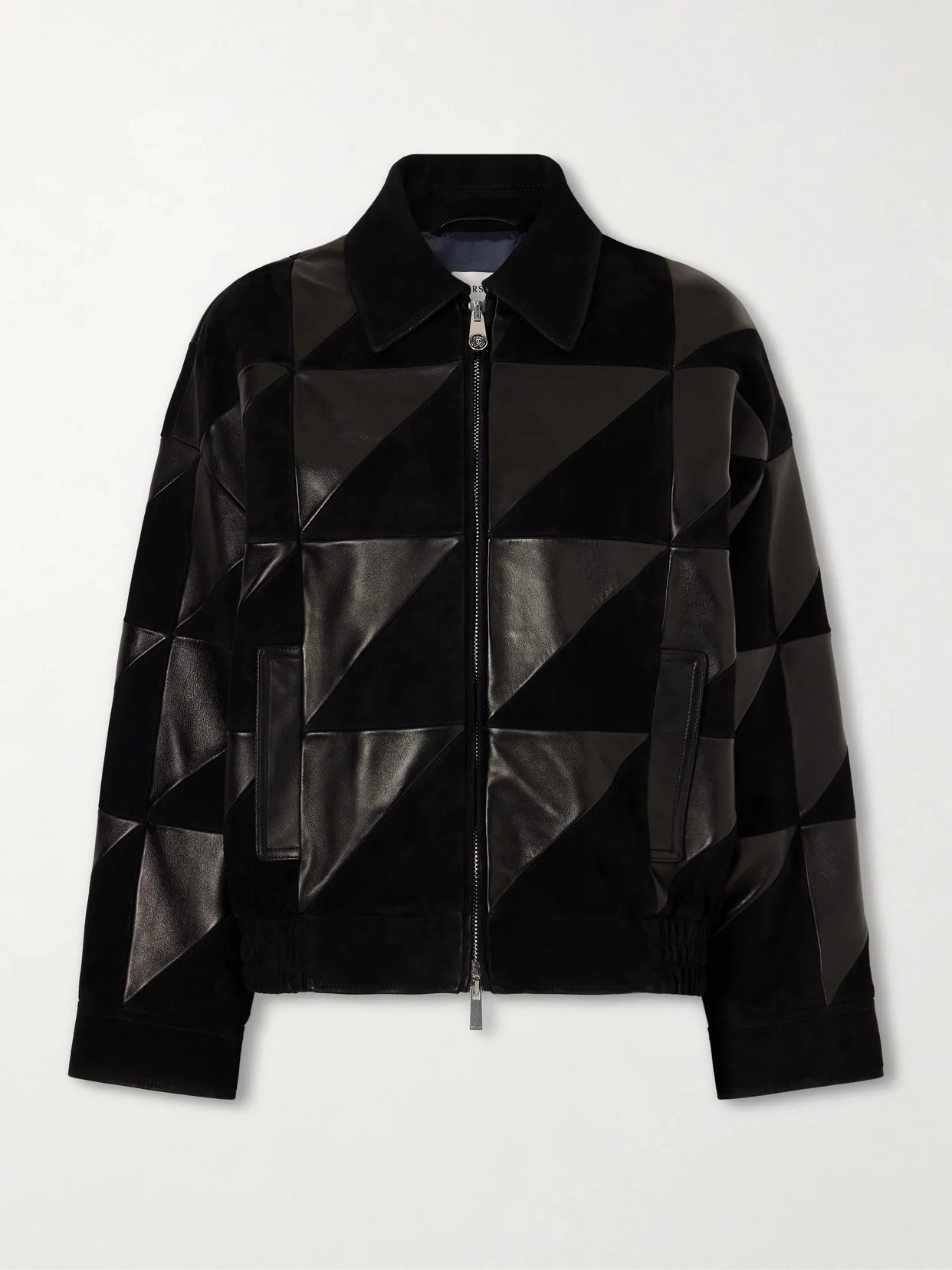 Versace's runway jacket captures the house's bold, graphic energy. Crafted from leather, it's paneled with contrasting squares for a striking, high-impact finish. Layer it over pared-back separates to let the pattern take focus.