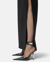 DETAILS These patent leather slingback pumps feature sharp pointed toes and slim square heels in a galvanised finish The ankle strap has a metal Versace Milano lock closure inspired by the archival 90s Vintage Logo and features an engraved checkered pattern - Versace Milano lock hardware - Slip-on - Slingback strap - Pointed toe - Slim block heel - Outer composition: 100% Calf leather - Lining: 100% Lambskin - Sole: 100% Calf leather Item: 1016741-D2VE_1B00P SIZE & FIT - The shoe weighs approximately 10.5 oz / 0.3 kg for the model size 38 IT - Heel: 4.1" / 10.5 cm - Footbed: slim - Fit is true to size, we recommend taking your normal size