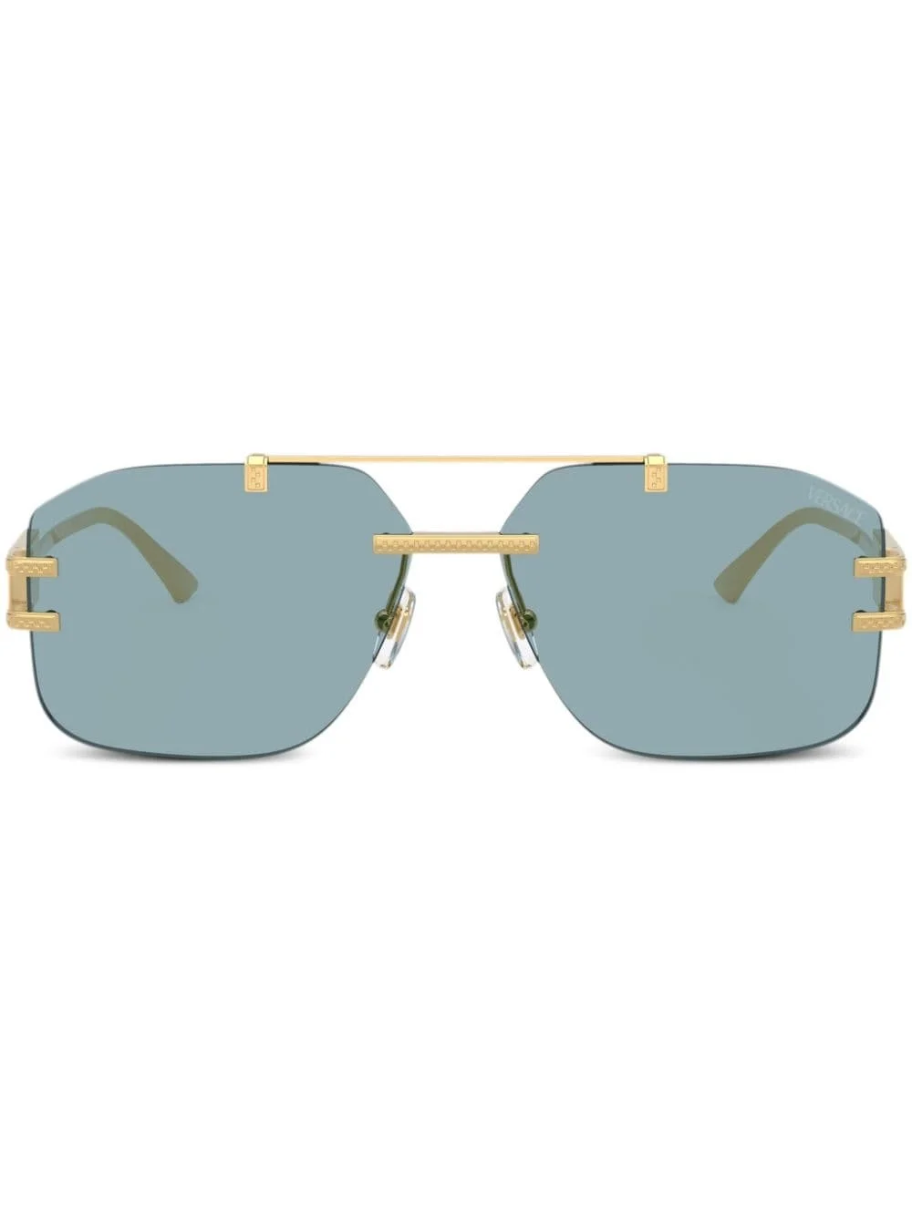 pilot-frame sunglasses Highlights - Gold-tone - Pilot frame - Metallic effect - Double bridge - Blue tinted lenses - Straight arms - Debossed detailing - Logo plaque at the arm - Curved tips - Nose pads - These glasses come with a protective case. Made in Italy Composition Metal 100%