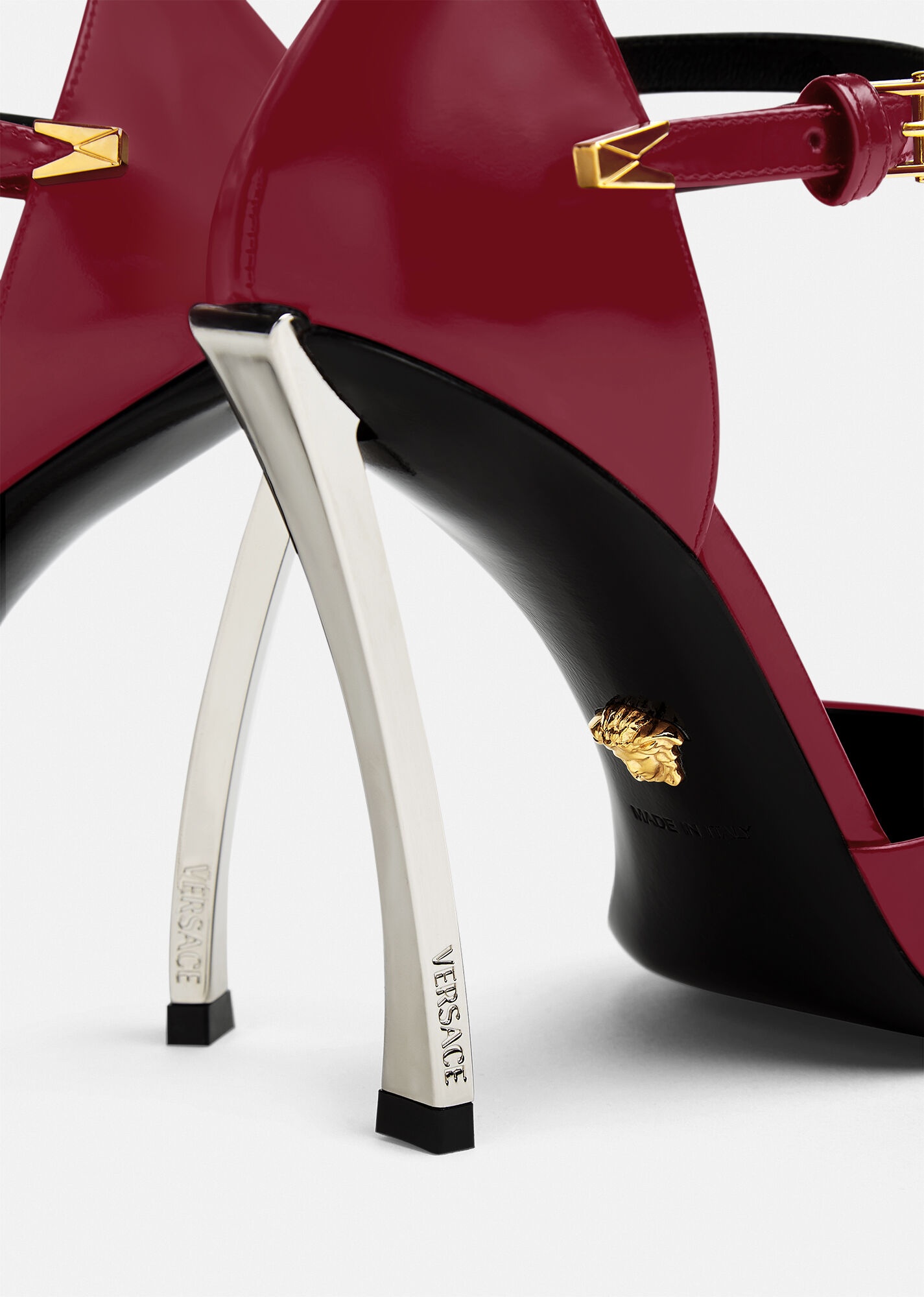 Characterised by curved high stiletto heels, these leather pumps feature sharp pointed toes and double buckle straps at the front. They're accented by V-shaped hardware. DETAILS & CARE - V hardware - Buckle ankle straps - Pointed toe - Stiletto heel - Lining 1: 100% Lambskin - Lining 2: 100% Goat Leather - Outside: 100% Calf leather - Sole: 100% Calf leather SIZE & FIT - Fits true to size, take your normal size - All sizes fit Italian standards