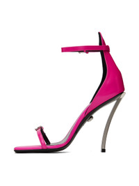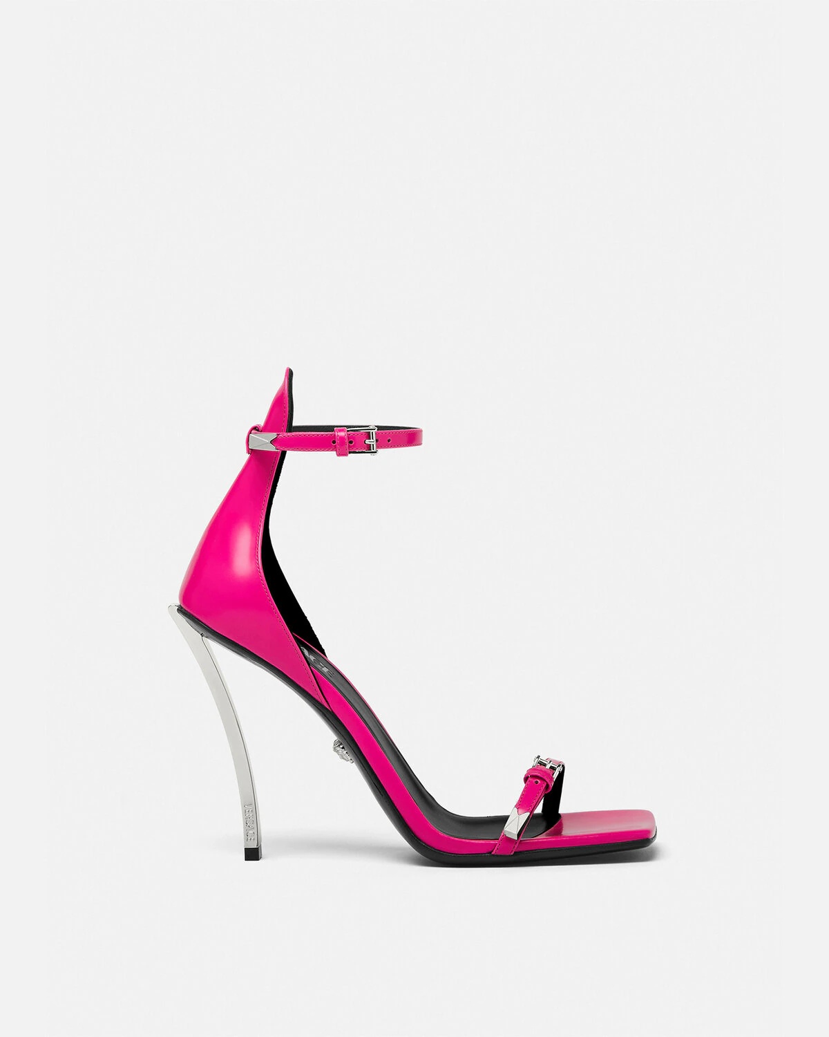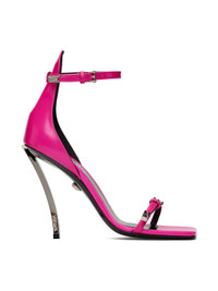 These high-heeled sandals feature the signature Pin-Point buckle on the straps and the curved stiletto heel. DETAILS & CARE - Adjustable buckle straps - Square toe - Stiletto heel - Outer composition: 100% Calf leather - Lining 1: 100% Lambskin - Lining 2: 100% Goat leather - Sole: 100% Calf leather SIZE & FIT - The shoe weighs 7.1 oz for the model size 39 - All sizes fit Italian standards - Fits true to size, take your normal size - Heel: 3.9"